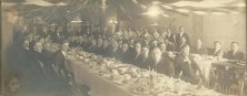From our Historical Notebook this week we present a photo of the 1912 Moose banquet held in their hall. As you can see, the room is well decorated, and food fills the table. I have list of names of those who attended that event, but have only identified two persons in this photo so far. Standing in the far back are the waiters; the second person from the right end and wearing a dark vest, is Clyde Decker. On the far left first row in the foreground, the second person from the right is Clarence Blodgett.