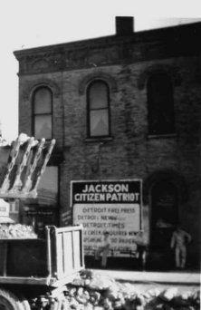 Morning Star, September 15, 2013, pg. 14 This coming Saturday, September 21 is our annual Festival of the Forks. Yours truly will have his Albion history booth in front of First Merit Bank at 205 S. Superior St. Be sure and stop by and see what I have to offer, and to let those visiting from out-of-town know about my booth, too. I'll have copies of both "Growing Up in Albion," and "Albion in Review" available. I also hope to have a big surprise at my booth but it is premature for me to make any official announcement yet and to get my autograph pen out. Drop by and find out. When we think of downtown Albion, we think about all the businesses that once were open there. In looking at each building we can even imagine some businesses or offices being located on the 2nd floor above the merchants. Many "office" type businesses, particularly doctors and dentists, once dotted the 2nd floors of downtown Albion. This past year the Albion Community Foundation moved from the 2nd floor to the main floor. Did you know however that downtown Albion once had a handful of basement businesses? Many years ago when Albion was booming and space was at a premium, some entrepreneurs set up shop in the basements of downtown buildings. They were accessed by an outside stairway from the sidewalk. Two particular locations that had basement businesses were across the street from one another. In the huge Eslow block in the basement was the barber shop of Frank M. Pierce (1872-1955) at 216 ½ S. Superior St. It was located below the Kroger store which was on the main floor. Many Albionites remember the protective top railing that had sharp points on it to keep people from sitting on the railing. Mr. Pierce operated his barber shop at this location for 20 years before retiring in 1949. Across the street at 300 ½ S. Superior St. in the basement was the Albion News Agency, run by Alfred J. Marble (1886-1962) beginning around 1920 to 1954. The 1923 Albion City Directory cleverly lists the address as 300 ¼. This firm had a long history. In the 1917-18 Albion City Director it was called the Daines Brothers Newspaper Agency, run by Leo and Ralph Daines. They apparently sold it to Clyde Bacon, who sold it to Mr. Marble. The Albion News Agency handled the local delivery of various newspapers such as the Detroit News, the Detroit Free Press, the Detroit Times, the Battle Creek Enquirer and News, and the Jackson Citizen Patriot. It also offered magazines and subscriptions. Imagine carrying newspaper bundles up-and-down the steps every day to prepare them for local delivery. Marble sold the business to Oscar D'Haem in 1954, who continued to operate it through 1960 at that location. As Albion entered the 1960s, the City of Albion made a determination to eliminate the underground coal "bunkers" under Albion's downtown sidewalks during its new sidewalk project in 1962. This also included filling in the outside entrances to the basement businesses. Thus ended their existence. From our Historical Notebook we present a 1940 photograph taken during the brick street reconstruction. It shows the news agency sign painted on the side of the building at 300 S. Superior St. where the steps were that led to basement business on the W. Porter St. side. How many of our readers remember the basement news agency located here? ![]() 1940s Newspaper Agency during brick street reconstruction All text copyright, 2026 © all rights reserved Frank Passic | Artwork copyright Maggie LaNoue © 2026