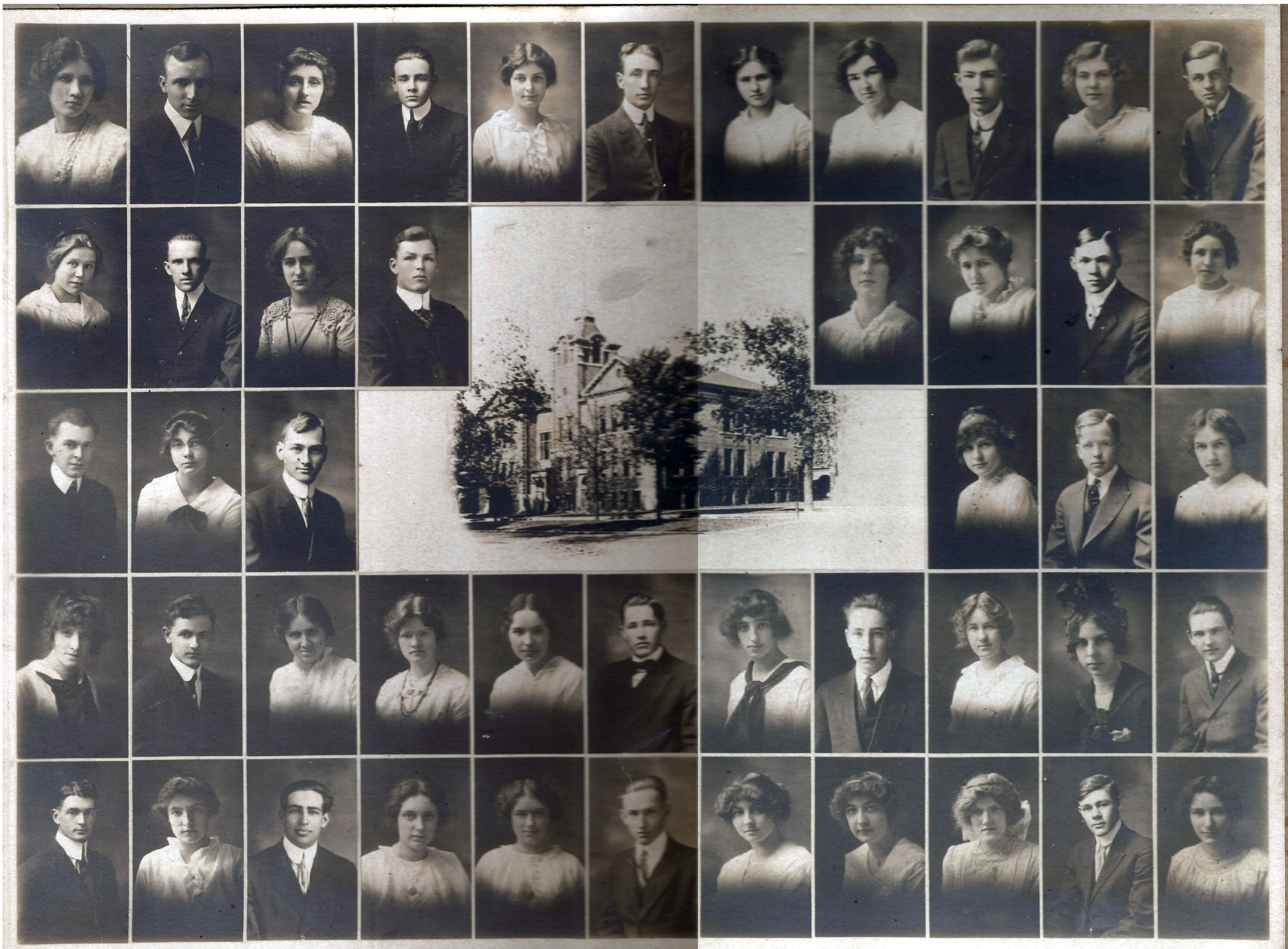 Morning Star, May 18, 2014, pg. 10 We were sorry to learn of the recent announcement that there will not be any Albion Community Band concerts at the Victory Park Band Shell this summer due to the lack of musicians. We will definitely miss it and the good times with our fellow citizens on Sunday evenings in the park. Hopefully the Band will be able to successfully recruit for next year. Each year at this time we feature the Albion High School class of 100 years ago. Gosh, with Albion High School now gone, I’m only going to be able to feature this annual theme for just 99 more years, to 2113. This is the first year that Albion has had no graduating class back to 1877 (1878 was the first graduating class). The Class of 1914 contained several future prominent Albion personalities. Class president was Ellery Oakes. Class Valedictorian was Olga McGuire. Ruth Rhodes was salutatorian. The class flower was the American Beauty Rose. This class had no motto, in Latin or in English, an anomaly at the time. The commencement occurred at the big Methodist Episcopal Church on E. Erie St., customary of those times. The date was the evening of Thursday, June 11, 1914. The address was given by Professor W. H. French of the Michigan Agricultural College. His subject was "The Big Four." His four points were: calling, culture, cooperation, and character. Superintendent William J. McKone handed out the diplomas. In looking through the list of graduates, there are several names that stand out. Audrey K. Wilder (1896-1979) served as Dean of Women at Albion College for many years and was a prominent Albion historian. Valedictorian Olga McGuire (1897-1980) (Mrs. Ralph Hicks) subsequently became a teacher at Albion High School for 43 years. Harold F. Wochholz (1895-1951) ran an insurance agency. Ruth Rhodes (Mrs. Earl Connor) (1896-1999) was the salutatorian and the longest living class member. She lived to be 103 years old! Here is the list of the forty-eight (48) graduates of Albion High School Class of 1914: Cecil J. Addington, Florence S. Baker, Lucile Ball [No, not that one], Clark Barrell, Marian Bedient, Samuel W. Bennett, Mayta Bohm, Clara A. Briggs, Iva E. Broxholm, Margaret A. Courtright, Roger H. Davis, Frank DeWeese, Margaret M. Doyle, Gladys Cornell Finch, Eleanor M. Foskit, Mildred Hall, William C. Hamilton, Richard E. Holtz, William Frederick Holtz. Marian Olga McGuire, Stella M. Miller, Eugenia F. Minkler, Kate Florence Morse, Ellery Armour Oakes, Lena M. Pettibone, Myrtle I. Pierce, Ross Quackenbush, Myrtle D. Rager, Alice Ludicia Reed, Ethel L. Rhinemiller. Edith L. Richards, J. Coral Richardson, Ruth Ella Rhodes, LeGrand H. Rickerd, Gladys L. Robinson, Marian Ethel Rogers, Hazel M. Romans, Oliver C. Saunders, Harry Arthelo Sawyer, George A. Schumacher, Hazel P. Sleeper, Doris Inez Sleeper, Millard Fillmore Smith, Rex Byron Starks, Lucile B. Townley, Alfred Frank Tuchtenhagen, Audrey Kenyon Wilder, and Harold Frank Wochholz. ![]() Albion High School Class of 1914 From our Historical Notebook this week we present a composite photo of the Albion High School Class of 1914. This was also published in the Breeze Graduation Issue, 1913,Volume IX No. 8 as the center fold. How many of them do you remember? FULL CLASS PHOTOGRAPH: Top row, left to right: Myrtle Pierce, Cecil Addington, Stella Miller, J. Coral Richardson, Florence Baker, Alfred Tuchtenhagen, Lucile Ball, Eleanor Foskit, Harry Sawyer, Gladys Robinson, Harold Wochholz. 2nd row: Myrtle Roger, Richard Holtz, Olga McGuire, George Schumacher, Edith Richards, Kate Morse, Roger Davis, Mildred Davis. 3rd row: LeGrand Rickerd, Audrey Wilder, Frank DeWeese, Lucile Townley, Rex Starks, Margaret Doyle. 4th row: Mildred Hall, Oliver Saunders , Alice Reed, Mayta Bohm, Ruth Rhodes, Harley Allen, Gladys Finch , Ellery Oakes , Margaret Courtright, Hazel Romans, William Hamilton. Bottom row: Clark Barrell, Marian Bedient, Samuel Bennett, Hazel Sleeper, Doris Sleeper, Ross Quackenbush, Ethel Rhinemiller, Lena M. Pettibone, Eugenia Minkler, William Holtz, Iva Broxholm. Not pictured: Clara Briggs. All text copyright, 2026 © all rights reserved Frank Passic | Artwork copyright Maggie LaNoue © 2026