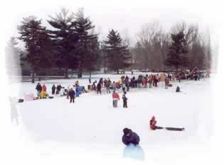 Here the various entries line up and wait to be judged. The audience is visiting neighbors and looking for hot chocolate.