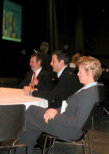 At right, Dr. William Anderson, Director of the Department of History Arts and Libraries, Richard Florida, author of "Rise of the Creative Class" and Governor Jennifer Granholm listen to Betty Boone (not pictured) the Executive Director of the Michigan Council for Arts and Cultural Affair make introductory comments. |