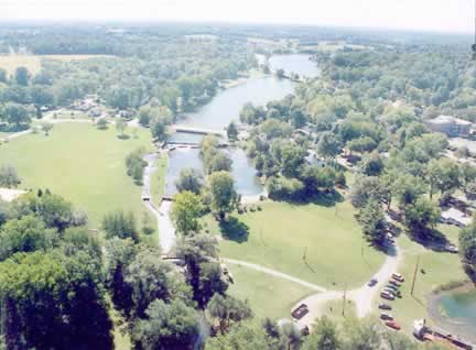 If there weren't so many trees in this view, you might be able to see the actual forks of the Kalamazoo River in this photo. The Festival of the Forks was named after the forks of the river. The city of Albion was founded at the forks of the river, because it seemed like a good place to found a city. The green area is Rieger Park in the foreground, and Victory Park on the left. To see the parks map, click here. Use your back button to return to this page.