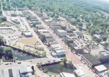 This is a good overall view of Albion. You can see the Kalamazoo River, the Market Place on the left, Superior Street looking south and Cass Street cutting across the bottom of this view. This is a good place to say something about Albion's Festival of the Forks. It's different from festivals in neighboring cities. We don't have the fanciest homes, the fanciest cars, the most lights on our Christmas trees or the biggest hot air balloons. We have each other. We're a diverse bunch of people. At our festival, we all come together and celebrate our diversity and our unity. Basically it represents the love of mankind. Which begins at home. And it begins with one day. The rest of the year we work to remember this. |