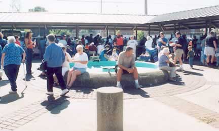 Here is a closeup view of Stoffer Plaza. The booths in the background are usually used by merchants in the Farmer's Market. During the festival, there were still a few farmers there, but most of the merchants were selling food. You could get a fried catfish sandwich, smoked ribs, fried chicken, pizza, tacos, all kinds of sandwiches and good food. This is where Albion's diversity really shines. Everyone had plenty of great food to eat, and lots of friends to eat it with. |
