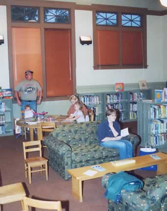 The newly renovated Children's Room at the Albion Public Libray is a comfortable, friendly place to go to ready, to study or to reflect. The room has high ceilings, fans, murals, comfortable seating, and of course lots of books. |