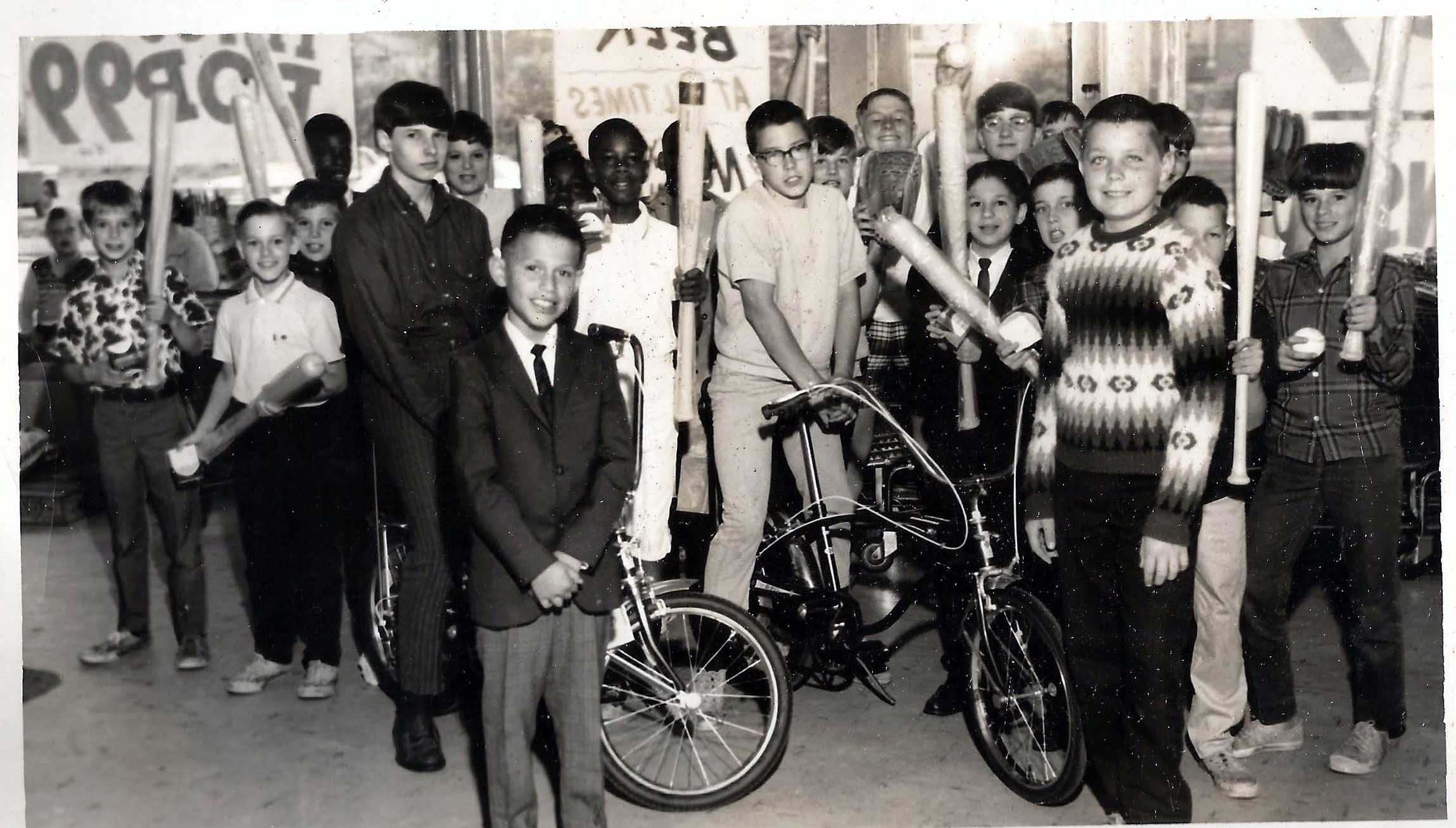 Morning Star, June 12, 2016, pg. 9 There was stiff competition between the three supermarkets in Albion in the 1950s & 1960s: A & P, IGA Foodliner, and Felpausch. To entice shoppers into their establishments, they offered promotional such as bingo games, scratch-off cards to win cans of food or cash, green stamps, yellow stamps, and even gave away automobiles and bicycles. The worst one I remember the most was "Let’s Go to the Races" where you would get a card from the IGA supermarket with a horse’s number on it and then watch TV Channel 6 on Saturday afternoon to see if your horse won the race. The scenario was the same each week: "your horse" was ahead the entire race until the last three seconds when you saw this horse with a different number pull up from nowhere and overtake your horse at the finish line. That didn’t go over very well. Another one (at the A & P) featured what would be a lottery card today, which you had to match three dollar amounts. Unfortunately you didn’t necessarily get that dollar amount. There was another scratch rectangle on the top which gave the amount you actually won if you had three matching amounts below. I saw this happen: A gentlemen had three $1,000 scratch offs. But the top rectangle showed he won $5.00 by having three matching scratch offs below that stated $1,000. That promotion didn’t go over very well, either. It was very confusing and people weren’t happy with it. Back in June, 1967 the IGA Foodliner on N. Clinton St. offered a Boys contest. Sorry girls, you could do that back then. There were two grand prize winners, who won an all expense paid (airfare included) week of fun in California including a trip to Disneyland. Two second prize winners received new bicycles. From our Historical Notebook this week we present a photograph of the winning boys. In front are the grand prize winners (l-r) Nick Fuentes and Tony Buscaino. Just behind them are the second prize winners with their new bicycles, Tim Paugh and Stanley DeVoir. Other contest winners with lesser prizes such as baseball bats and balls are pictured in the back. They are (not in order): Tim Kurtz, Sam Manino, Mike Andreas, Jim Pewsey, Paul Bates, Tom Evans, Dennis Tautkus, Charles Yates, Denny White, Stanley Margraves, Aaron Aalbregtse, David Currie, Kent Transue, Mike Spaan, Terry Mills, Philip DeVoir, Robert Wisley, Larry Union, Marion Green, George Williamson, Scott McKay, Tim Gibbs, Dan Swathwood, Doug Huffman, Joe Prigun, Joe Calvaruso, Dennis Bartell, and Robert Burns. How many of our readers remember this Boy’s contest at IGA? ![]() IGA Bicycle give-away on June 10, 1967