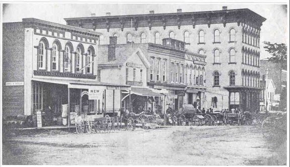 Albion Recorder, December 13, 2001, pg. 11 In the 19th century and early 20th century there was published an annual Michigan Gazetteer Business Directory. This was the yellow pages of those times where a person could look up the name of any community, read a short synopsis about that locale, and read a listing of the merchants and businesses in that town. As the State of Michigan grew, these Gazetteers grew larger each year in size, and by the 1930s were being published several inches thick with hundreds of pages. These Gazetteers have been a excellent resource for Albion history, as they cover time periods when no village or city directories were published, or where no newspapers survived to be microfilmed. It is always interesting to read these to see how the image of our town was portrayed. Albion appears in the 1838 Gazetteer with this description: Albion, a village of recent origin, situated on the Kalamazoo River, on the located route of the central rail road, in Albion Township, Calhoun County. It has a post office, a saw mill, a flouring mill, a tavern, 3 stores, and 4 physicians. It is on the surveyed road from Monroe to Marshall, andone and a half miles south of the Territorial Road, ten miles from Marshall, and 100 from Detroit. It contains about 40 dwellings, and is in a thriving condition. What would the Gazetteer have to say about our community today? The Territorial Road was the main trail where hundreds of settlers moved across Michigan in the 1830s and 1840s. Today it is known as C Drive North and Comdon Road north of Albion. Austin Avenue on the west, and Michigan Avenue east of Albion were exit roads built by Jesse Crowell to bring people into our community from Territorial Road. One time period where local historical documentation is sparse is the 1870s, and the Gazetteers are an excellent help. The 1879 Gazetteer gives this description of our community: Albion. An incorporated village of 3,200 inhabitants, situated in the eastern part of Calhoun County, in a fine agricultural region. It is on the Michigan Central railroad, 20 miles west of Jackson, and 12 east of Marshall. The Lansing branch of the L. S. & M. S. Ry. also passes through the place, by which route it is 22 miles north of Jonesville and 38 south of Lansing. The village has a bonded debt of $14,000 school bonds, and the college, under control of the Methodist Episcopal denomination, is a predominating feature. This insitution is now on a much stronger footing than formerly, having secured an endowment of $200,000. The college numbers around 200 students. There are five union school buildings and six churches in Albion, and it supports two weekly newspapers--the Recorder (Independent), and the Mirror (Democratic). There are three hotels: the Commercial, a first class house under the management of H. A. Foster, formerly of Fosters Coliseum Theatre, Detroit; the Albion House and the Exchange Hotel. There is one bank, the National Exchange with a capital of $100,000, and two private banks. The Western Union Telegraph and United States and American Express companies have offices here. Mail daily. Martin Haven, postmaster. Following that friendly description of our town is a listing of the businesses and businessmen in alphabetical order. Some sample entries include: Albion Recorder, Horace E. Gemberling Editor and Propr. (Independent Weekly), 26 Superior. Bull, Isaac. Pump Dealer. Constantine, Sidney M. Attorney at Law and Collection Agent, 52 Superior. Coulson, John T. merchant tailor. Graves, Edward L. photographer, Superior. Schwer, George, saloon, Erie. Tremper, Robert H. Surgeon Dentist, 78 Superior. Many of the old Michigan Gazetteers are on the shelves at the Library of Michigan in Lansing. When visiting the Library, why not look at these and read what Albion was like? Theres alot of interesting information in these. You can also look up neighboring communities such as Duck Lake, Devereaux, Eckford, Marengo, Homer, etc. From the Archives this week we present the classic photograph of downtown Albion taken in the early 1870s as published in the Journal of Albion, April 30, 1957. The whereabouts of the original is unknown. It shows the west side of the 200 and 300 blocks of S. Superior St. On the far left is the Clift Block as it looked before the Sheldon Block was erected adjacent to it. Here we see the grocery store of Charles E. Bogue. Next in the wood framed building with the peaked roof is the Howard Quinlan Grocery, upon which a sign on top states, The Cheap Grocery Store. Next is a an establishment run by W.A. Harris, thought to be a barber. The next building with the chimes on top of the roof is the Albion Exchange Bank at 304 S. Superior St., owned by James W. Sheldon. This later became the Albion State Bank. Next is a merchant tailor shop, and on the corner is the National Exchange Bank. Across the street of course is the huge four-story Eslow Block which at the time was part of the Commercial Hotel complex that stretched back into W. Porter St. Erected in 1869, this was the biggest landmark in Albion for many years until the top story was removed in 1919 following a disastrous fire. The original portion of the Hotel, now the site of the Moose, was erected in 1867. Next are two wooden buildings which housed a clothing store and a shoe store. On the far right is the Howard Hall building, a social and community gathering place where a variety of meetings and activities were held in the 1850s and 1860s. I would like to take time this week to thank members of our community who have supplied me with historical photographs and materials which have helped greatly in the preparation of these articles, and for our sponsor who has helped make this series possible. Be sure and patronize their business establishment this Christmas season. ![]() Superior Street in the 1870s All text copyright, 2025 © all rights reserved Frank Passic
