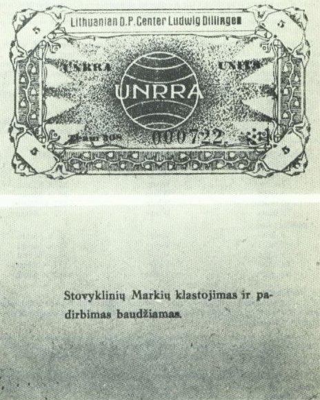 UNRRA records confirm the use of camp money in the Dillingen district. In May 1946 Team 308 Field Supervisor G.C. Brooke wrote:
