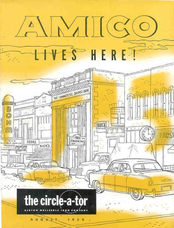 Bird's Eye view of the Albion Malleable Iron Company, now Harvard Industries, where many Lithuanians worked. 1962 photo. One major Albion employer was the Albion Malleable Iron Company. Founded in 1888, the company actively recruited workers from Russia during the first decade of the 20th century when it began producing automotive castings. A glance at certain ship passenger lists from Russia during the period will often have written as the destination, "Albion Malleable Iron Company, Albion, Michigan." Several hundred Russian, Polish, Ukrainian, and White Russian workers came to work here during the 1900s and early 1910s. Workers were placed in company housing in the vicinity of the plant. The area became known as the "foreign settlement," and the local public school system offered classes in English and American citizenship. The foreigners were looked down upon by the educated persons in town of English heritage, yet realized these people had the need to "become civilized and learn our laws and customs." Two Russian ethnic churches were established, as well as growth in the already existing Roman Catholic Church. Such were the times, conditions, and attitudes that immigrants from Eastern Europe met with when they arrived in Albion to work at the Malleable. The work was hard, dangerous, hot, and the air was dirty. Some shifts lasted 12 hours a day. Workers would mix their own sand and pour their own hot molten bulls of iron. One foreman at the plant, after hearing the long foreign surname of one of the Russian immigrant workers when he arrived, pointed to him and exclaimed, "Your name is Smith!" Hence, the man went by Smith from then on, and it was included on his Social Security number, employment and identification papers, etc. The Albion Malleable Iron Company was the major employer of European immigrants in town for many years. The children of Malleable workers attended the Albion Public Schools, and were able to successfully assimilate into American society, attend college, and go into many professions. Beginning in the 1940s, the company published a newspaper called the Circle-A-Tor, which was filled with photographs of its workers in daily life, such as school, vacations, fishing, and home life. These are a valuable source of information about specific Lithuanian families during the 1940s to 1960s.