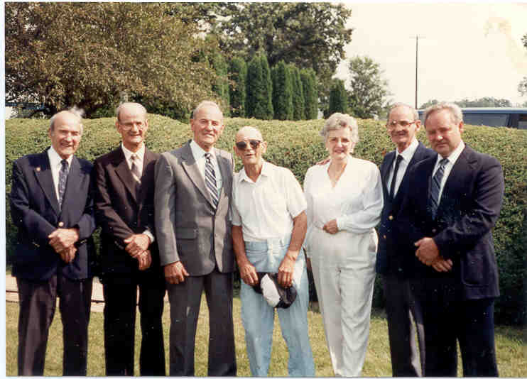 Kulikowski (Kulikauskas) siblings gather at funeral of brother Julius, August 10, 1993 Albion Memory Gardens, Albion, Mich. Left to right: Joseph, Victor, Michael, Stanley, Pauline (Kulikowski) Passic, John, Lawrence "Boom-Boom."