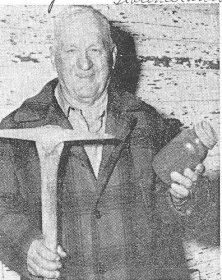 John Shimkus (1897-1982), originally from Erzvilkas, Lithuania, holds a jar of coal he mined north of Albion in the 1930s. Shimkus (1897-1982) was a native of Erzvilkas, Lithuania, a small town near the Prussian border. He arrived in the United States alone on June 8, 1913 and settled in Bay City, Michigan, to work in the coalmines there, and lived with his Uncle Izadore Shimkus. He worked in the coalmines by day, and attended night school to learn the English language. There he was promoted to the position of mine foreman. John Shimkus moved to Albion in 1916 to work in the newly reopened coal mine here. He was the company's most valuable employee, and worked at the mine until it was closed in 1925. Later, he opened up his own private coal mine on his own land, which he operated until circa 1940. It was considered one of the last operating coal mines in Michigan. During World War II he worked at Union Steel Products in Albion, and then at the Albion Malleable Iron Company in the maintenance department for 18 years, retiring in 1963.