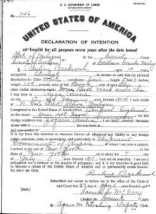 Declaration of Intention to become a U.S. Citizen, Pauline Baskevich, 1923. Living with the Baskevich family was a nephew, Stanley M. Tautkus (1918-1988), a native of Cicero, Illinois. The son of Michael and Barbara (Vaisnoras) Tautkus, Stanley grew up in Albion and was raised by the Baskevich family, as his parents had died at an early age. He worked at Service Caster Truck Company for 19 years before it closed, and then at the Malleable in the tool and die department for 26 years, retiring in 1984. He is survived by his widow, Lucille (Markovich). Stanley's brother Alex "Wally" Tautkus (1916-1995) came to Albion to live in 1934. After working at the Malleable for a time, he became the plant superintendent at Brooks Foundry just east of town before his retirement in 1979. Alex' wife Jean died in 1996. He is survived by a son, Dennis.