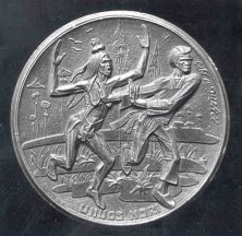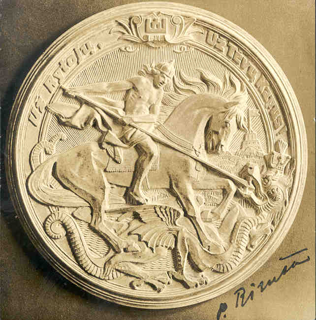 Lithuania’s most outstanding medalist was sculptor Petras Rimsa (1881-1961), a contemporary of Germany’s Karl Goetz. Many of Rimsa’s designs reflect Lithuania’s patriotic themes and range from religious subject matter to sarcastic political commentary. Because of the unfortunate chain of events that befell the Republic of Lithuania after World War II, Rimsa’s medalic works are relatively unknown. Rarely available on the market, his medals are highly prized and dearly cherished by Lithuanian collectors everywhere. Petras Rimsa was born November 11, 1881, in the Lithuanian village of Naudziai. His parents were farmers of the Suvalkai Province, and in the is rural setting young Petras aspired to be an artist. He was especially talented and showed a marked tendency for work that required skill, accuracy and patience. As a young boy he spent much of his leisure time whittling and decorating household articles and farm implements. Before long he had acquired the name of “Master” in his village in recognition of his artistic work. At the age of 17, Petras left his village for Warsaw, Poland, to study art under the tutelage of Polish sculpture Welonski. He then traveled to France to further study at the Ecole des Beaux Arts under Professor Antoin Mercie. After completing his courses there, Rimsa traveled to various European centers of art and culture, continually increasing his knowledge and skill. ![]() THE LITHUANIAN SCHOOL, one of Rimsa's most famous works. This piece represents the secret teaching of the Lithuanian language in the home during the period when the Russian govermnent had placed a ban on teaching and use of the language. Upon his return to Lithuania in 1906, Rimsa immersed himself in local Lithuanian cultural activities, helped to establish the Lithuanian Art Association and participated in the first Lithuanian Art Exhibit in 1907. Here he exhibited his most famous sculptural work, The Lithuanian School, which received much critical acclaim. This masterpiece represents the Lithuanian school between the years 1864 and 1904 when the Russian government has placed the strictest ban on all Lithuanian literature. The sculpture shows a mother secretly teaching her child the Lithuanian language. The alert and watchful dog beside the child shows the constant fear with which the school operated. ![]() Rimsa’s work THE PLOUGHMAN, created in 1922, graphically depicts the country’s misery under Russian occupation.