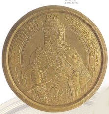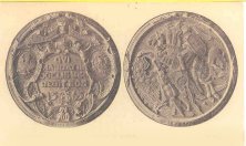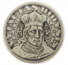 Obverse: Shown is the image of the late organizer. In the background is depicted the ceremony of the presentation of the colors. The legend reads VLADAS PUTVYS-PUTVINSKIS 1873-1929, LIETUVOS SAULIU SAJUNGOS I KUREJAS, which translates “Vladas Putvys-Putvinskis 1873-1929, founder of the Lithuanian National Guard.” A smaller inscription in the center circular area translates, “thou has raised the forgotten shield of Kestutis and presented it to the Lithuanian National Guard, which was designed by Rimsa. The inscription reads IR SIRDI IR PROTA TEVYNES RYTOJUI which translates “both heart and mind for the nation’s future.” Reverse: At the top is the Vytis emblem, opposite which are the Columns of Gediminas. In the center is the insignia of the National Guard, which was designated by Rimsa. The inscription reads IR SIRDI IR PROTA TEVYNES RYTOJUI, which translates “both heart and mind for the nation’s future.” 10. Vytautas the GreatLithuania’s greatest patriarch, Vytautas the Great, reigned as Grand Duke of Lithuania from 1392 to 1430. Vytautas expanded Lithuanian territory and made it one of the leading European powers of his day. He led the Lithuanian army and allies to a spectacular victory over the Teutonic Knights at the epoch-making battle of Tannenberg in 1410. This event stopped the advance of the Knights, assuring independence for Lithuania and other eastern European nations. The Polish army participated in the battle; their army was located nearby at Grunwald. The Vytautas the Great medal is Rimsa’s most well known. Struck in many sizes (the original was 35 millimeters), this medal has the largest mintage of all Rimsa’s medals: 17,000 total. The obverse design became the emblem for the patriarch’s death. During Rimsa’s 1936-1937 tour of the United States, he presented a specimen of the Vytautas medal to the American Numismatic Association. Obverse: Shown is the image of Vytautas the Great. The legend reads VITAUTAS DIDYSIS 1430-1930, which translates “Vytautas the Great 1430-1930.” In the background is depicted the Battle of Tannenberg, similar to that which is found on Polish artist Jan Matejko’s famous rendition of the battle painted in 1878.
