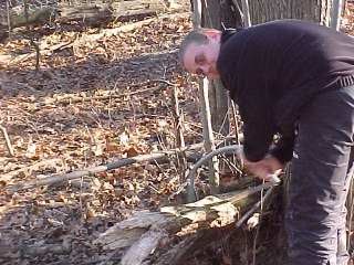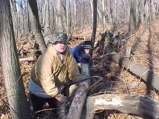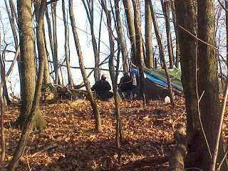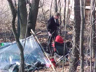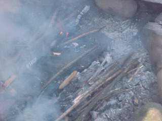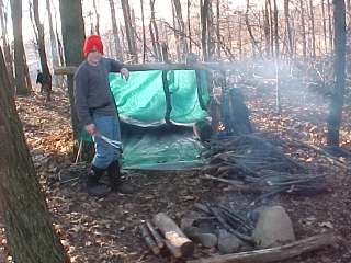 This photo shows the importance of having a good wood pile, so that the fire can be kept going. This camp site was able to maintain room temperature all night. In January. |