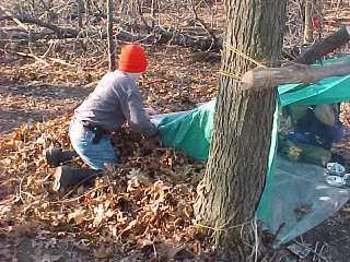 The scouts were not allowed to bring tents on this outing, however, plastic sheeting was permitted. |