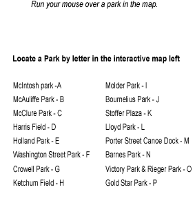 Albion's parks have their own appeal year 'round and we welcome you to visit any time. All parks close at sundown. See information about summer concerts, July 4 fireworks, the Festival of the Forks and more on the family activities page. |