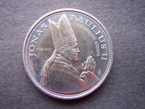 ![]() 1993 Pope John Paul II Commemorative 10 Litu Coin, reverse view