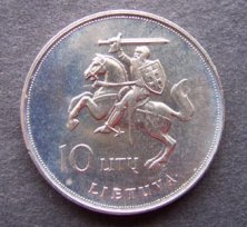 This 10 litu coin was issued to coincide with the historic pilgrimage of Pope John Paul II to Lithuania from September 4 to 8, 1993. His visit led him to several Lithuanian sites, including the Cathedral of Vilnius, the Hill of Crosses near Siauliai, and the Saints Peter and Paul Church in Kaunas. Years of Soviet occupation had prevented the Pope from traveling to Lithuania beforehand to experience first-hand these Lithuanian landmarks. It is no secret that the mother of Pope John Paul II, Emelia Kaczorowska, was of Lithuanian descent. Unfortunately, she passed away in 1929 when her son was only 8 years old. The numismatic statistics about the coin are as follows: Numismatic catalog number: KM-95. Weight: 13.15 gr. Diameter: 28.7 mm. Thickness: 2.7 mm. Metal content: Cupro-nickel (.750 copper, .250 nickel). Original mintage: 10,000. Sold/distributed: 5,000. Mintmark: LMK. Designers: Petras Garska (Vytis side), and Leonas Pivoriunas (Pope side). Edge: Lettered “TIKEJIMAS * MEILE * VILTIS *” The obverse of the coin features the new contemporary Lithuanian Vytis emblem in the center. The inscription below the Vytis reads “10 LITU LIETUVA.” This obverse design by Garska is identical to the Darius-Girenas issue of two months earlier, with two major exceptions our readers might like to make note of: 1) The Darius-Girenas coin had the “LMK” (Lietuvos Monetu Kalykla/Lithuanian Coin Mint) mintmark to the viewers right of the horse’s hind legs. No such mintmark appears in that location on the Papal coin (more about this later). 2) While the obverse of the Darius-Girenas coin contained just a wire rim, the Papal coin bears a dotted border around the rim. The dots apparently were added later to the original Garska model, as these dots on the Vytis side are somewhat smaller than the dots that appear on the Pope side. The addition of the dots helps give this coin some added artistic beauty to what would have been a very plain obverse. The reverse of the coin (note: American collectors however traditionally view the side bearing the portrait as the obverse, such as on the Lincoln cent or the Jefferson nickel) bears the image of the Pontiff facing right, with his hands folded in prayer. The top legend reads “JONAS PAULIUS II.” On the right to the left of the name in smaller lettering appears the words “LIUDYKIME KRISTU,” meaning, “Let Us be Witnesses for Christ.” The date 1993 appears horizontally in Roman numerals to the right of the letter “O” in “Jonas:” “MCMXCIII.” This side also contains a dotted rim, but the dots are larger, more pronounced and artistically appealing than those that appeared on the Vytis side. These apparently were included as part of the original design. This side of the coin was designed by artist Leonas Pivoriunas. At the 8 o’clock position in stylized writing appears his monogram “Pivor.” Now for an interesting observation. As mentioned earlier, on the Darius-Girenas commemorative, the LMK mintmark had appeared on the Vytis side to the right of the horse’s hind legs. That is noticeably absent on the Papal coin in that location. Instead, on this coin, the LMK mintmark has been transferred to the Papal image side, just to the right of and in front of the Pope’s praying hands! Perhaps officials thought it was better for the Mint to be blessed by the Pope, rather than to be kicked by the hind feet of a horse! Or perhaps they outright needed the Pope’s blessing. This new overt placement of the mintmark occurred only on this coin. In subsequent commemorative coins the mintmark appears in its normal position somewhere on the Vytis side. The edge of the coin is inscribed “TIKEJIMAS * MEILE * VILTIS *” meaning “Faith, Hope, Love.” This religious theme is taken from I Corinthians Chapter 13 in the Bible, verse 13. This religious text is in stark contrast to the years of oppressive atheism that Lithuania had to endure during the Soviet occupation. This coin was a reminder to the Lithuanian nation of their religious heritage. Regarding this coin, there was controversy about it among the collecting community, along with the Darius-Girenas 10 litu. When the litas was issued in June, 1993, no 10 litu coin was issued. Instead, citizens used 10 litu banknotes instead. This was in contrast to before World War II when both coins and notes of that denomination were circulated. These 1993 10 litù coins are noticeably smaller in diameter than their 1936 or 1938 counterparts. The 1993-dated commemorative coins were the first such ones issued by the new Mint of Lithuania. The quality was the best using the available equipment at the time. The coins have a mirror-like surface. A bone of contention among collectors concerned the outlandish issue price of 100 litu that the Bank of Lithuania was charging for these coins. Hoping to capitalize on the rising world numismatic market of the post-Soviet era, a price of 100 litu was set. At that time the value of the litas was not officially set, and for a time the ratio was almost 3 litai to 1 U.S. dollar. With the then-current exchange rates, a Darius-Girenas or Pope coin cost around U.S. $30. Later the value of the litas was officially set at a rate of 4 litai to 1 U.S. dollar, and the coins could be purchased for around U.S. $25. Collectors across Lithuania complained about the high price for an ordinary-looking uncirculated-quality common metal cupro-nickel coin that would normally have a face value of U.S. $3.00 at best. As a result, the policy was changed in 1994 with the issuance of the Song Festival 10 litu commemorative proof (KM-96), when the price was lowered to around 25 litai. That coin was issued in proof quality. For consistency however, and for fairness to those who had already purchase the coins at the high price, the price for the Darius-Girenas and Papal Visit coins were not lowered, but remained at 100 litai. Later, the Bank of Lithuania issued much larger diameter sized commemorati