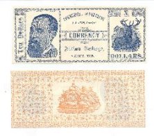 Printed with blue ink on white paper, the face side states, "Commercial Department C. A. Head, Principal. Currency. Albion College, Albion, Mich. X Dollars." The two lower denominations utilize the words "One" and "Two" respectively to indicate the values, while the others are indicated by the Roman numerals "V" and "X." On the right is the image of a 12-point elk with mountains in the distance (There are neither elk nor mountains in Albion). On the left is the image of a man, presumably Professor Head, with a big head on this note. The ornamentation consists of flower petals and diamond-squares. The back is printed with light orange ink and contains a drawing of a schooner in the center, surrounded by numerous starbursts which make up the rest of the design. These notes are unlisted in the standard "College Currency" reference book by Schingoethe. They first appeared on the numismatic market in the late 1990s in a price list by dealer Larry Falater. The notes were part of a small hoard of six sets plus some loose individual notes discovered in the Petoskey, Michigan area. They presumably came from Bay View, a popular Methodist retreat facility where many Albion College professors and students spent their summers, and where summer classes were also held. The Albion notes were discovered in an 1895-dated box of generic notes (listed as Mavericks MAV-645 and MAV-655 in Schingoethe) of the "Sadler’s Bookeepers & Office Practice" kit. The box was rubber-stamped with the name of the then-principal of the school, Charles L. McClellan and stated, "To be used by students and returned to Chas. L. McClellan, From BUSINESS SCHOOL of ALBION COLLEGE, Albion, Mich." There are no printing, design, or text similarities between the Albion College notes and the generic Sadler notes. The Albion College currency is alluded to in Fennimore’s book on page 265, but unfortunately a photograph of an 1863 "Business College Bank" $1 college currency note from Ira Mayhew’s Commercial College, also in Albion, is erroneously pictured (Schingoethe MI-150-1). Mayhew had served as principal of the Wesleyan Seminary at Albion (the original name of Albion College) in 1853-54. His business school was separate from the College and operated in Albion from 1860 to 1869 before it was moved to Detroit. Professor Cary A. Head was principal of the Commercial Department at Albion College only during the 1889-90 school year. Little is known about him. He left to become superintendent of the West Michigan Business University and Normal School of Grand Rapids, and was succeeded by Charles McClellan beginning with the 1890-91 school year. Miss Maggie Miller served as instructor of Shorthand and Typewriting at the school during the 1889-90 school year. Who were the students that used the Albion College currency during the 1889-90 school year? They are listed in the 1889-90 Albion College Yearbook. The following local Albion natives were enrolled full time as commercial students: William E. Aiken, Charles L. Curtis, James P. Dearing, Harry Eastman, Myron B. Gilbert, Louise Houck, Fred J. Hubbard, Fay K. Kellogg, Rienzi Loud, Jr., Henry E. McGee, Nettie L. Ott, and William B. Wood. Those students enrolled full time from other communities were: Eva G. Anson of Marshalltown, Iowa; Wortley F. Armstrong of Kalamazoo, Michigan; Francis J. Bolitho of Ishpeming, Michigan; Ernest Carnes of Shepardsville, Michigan; Agnes M. Hall of Concord, Michigan; Charles Kellow of Ishpeming, Michigan; Arthur B. Linderman of Whitehall, Michigan; Ernest R. Proctor of Wallace, Illinois; John Quayle of Ishpeming, Michigan; Hugh E. Root of Mason, Michigan; Frank H. Roach of Sault Ste. Marie, Michigan; George H. Sayers of Grand Rapids, Michigan; and Ernest O. Selway and Philip Thorpe, both of Dillon, Montana. There were also other students who were exclusively enrolled in the shorthand/typing division of the Commercial Department. The Commercial Department was closed in June 1916, as Albion College re-focused its emphasis on the liberal arts. Author Fennimore laments (pg. 390): "With courses like bookkeeping, shorthand and typing, the School of Business was the most vulnerable. This was to be expected, since the faculty consisted largely of traditionalists who had always held reservations about the propriety of offering vocational courses on a liberal arts campus. Even more, the Commercial Department occupied an ill-defined middle ground which borrowed parts of its operation from Albion College and supplied others itself." Thus the Commercial Department was discontinued after being in existence for thirty years. The 1889-90 Albion College currency however, is a reminder for collectors of the business college days of one of Michigan’s well-known private institutions. Special thanks to Albion College archivist Jennifer Thomas and numismatic dealer Larry Falater for their help and input in the preparation of this article. BIBLIOGRAPHY "Albion’s Banks and Bankers." Albion Historical Society, 1985. Albion College Pleiad, June 1890, and other issues. Albion College Yearbook, 1889-90. Falater, Larry. "New Discovery. Previously Unlisted Albion College Currency." Price list. Keith J. Fennimore. "The Albion College Sesquicentennial History: 1835-1985." Albion College, 1985. Herb and Martha Schingoethe, Neil Shafer, editor. "College Currency, Money for Business Training." BNR Press, 1993.