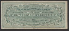By Frank Passic, LM-157. In October 2008, the estate of a 92-year-old man from Homer, Michigan (just south of Albion) was sold. In it were several ledgers from the “Mayhew’s University Book-Keeping” course kit, along with four high-denomination “Business College Scrip” notes. These were purchased by this writer. ![]() Ira Mayhew
