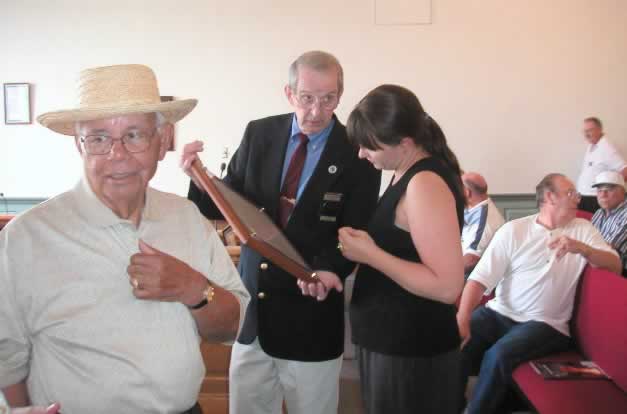 A candid shot of Charles Snyder, left, and Mayor Bill Wheaton who is showing the proclamation to Battle Creek Enquirer reporter Christine Iwan.